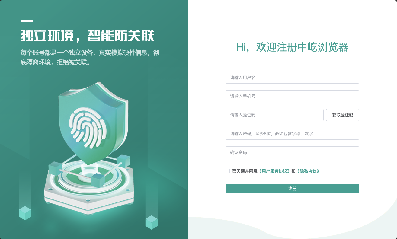 中屹指纹浏览器作为一款专注于隐私保护与多账号管理的工具,注册账号支持网页端与客户端两种独立渠道。以下为您详细介绍两种注册方式,完成注册后即可登录使用。