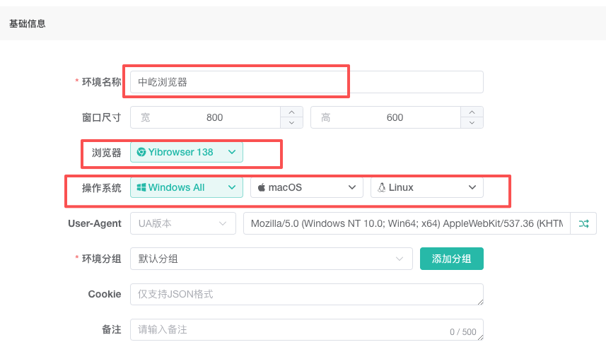 2、基础信息设置(环境名称:起一个标志性的名字,浏览器默认就可以,操作系统)