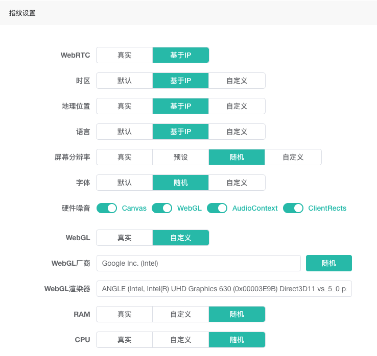6、指纹设置(就是设置你环境的不同参数,让平台以为是不同的设备)