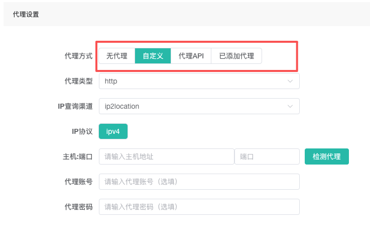 (2)自定义代理,从其他地方购买的IP可以单独设置。